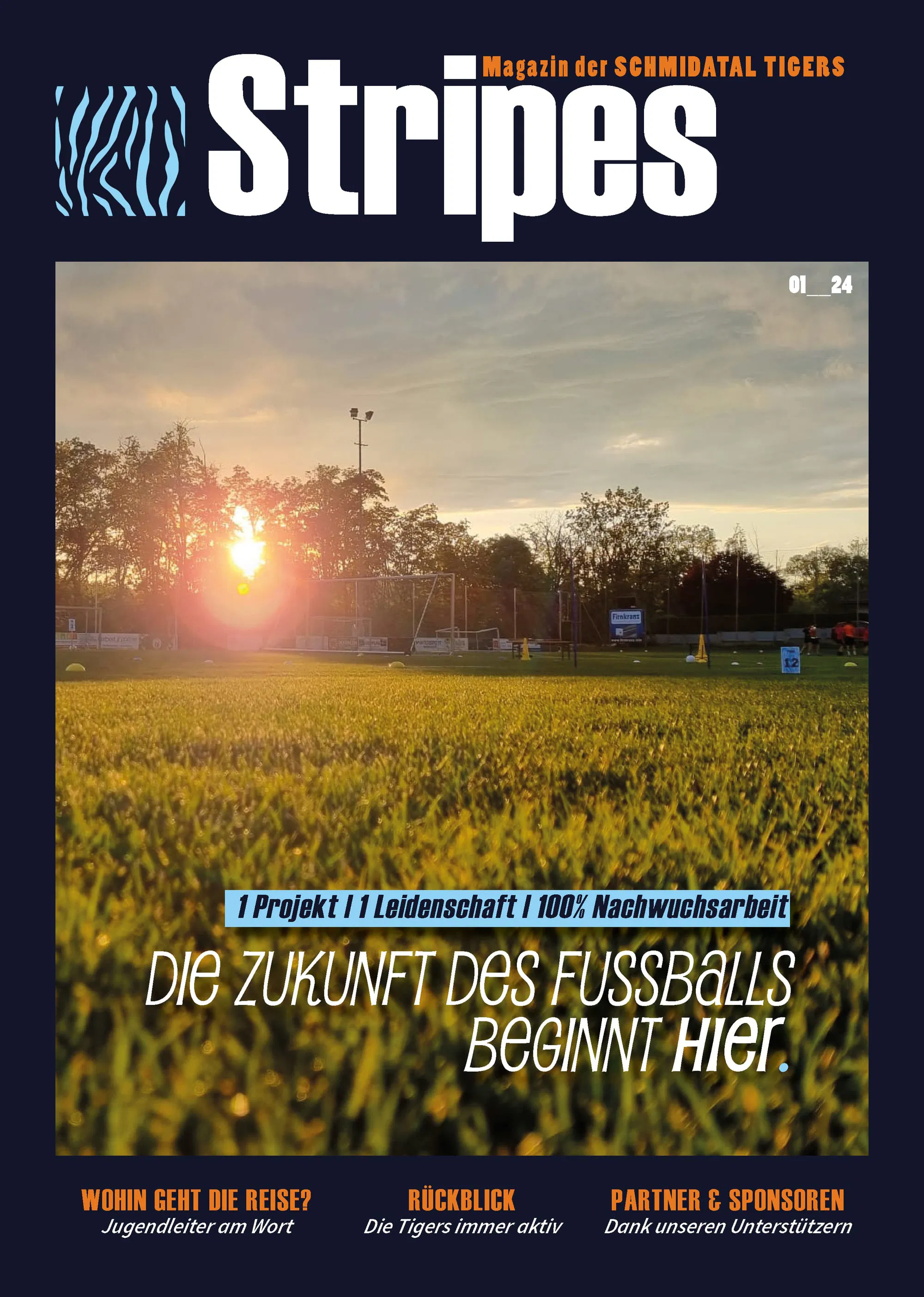 Mit der Saison 2024 haben wir begonnen ein eigenes TIGERS-Magazin zu erstellen, welches einen kurzen Überblick über die vergangenen Erlebnisse unserer Mannschaften und das Drumherum geben soll. In Anlehnung an die Streifen unseres Leittieres den Tiger, haben wir es STRIPES getauft. Neben der Verteilung an alle Eltern und Sponsoren liegt es auch bei allen Partnervereinen auf den Sportplätzen auf.